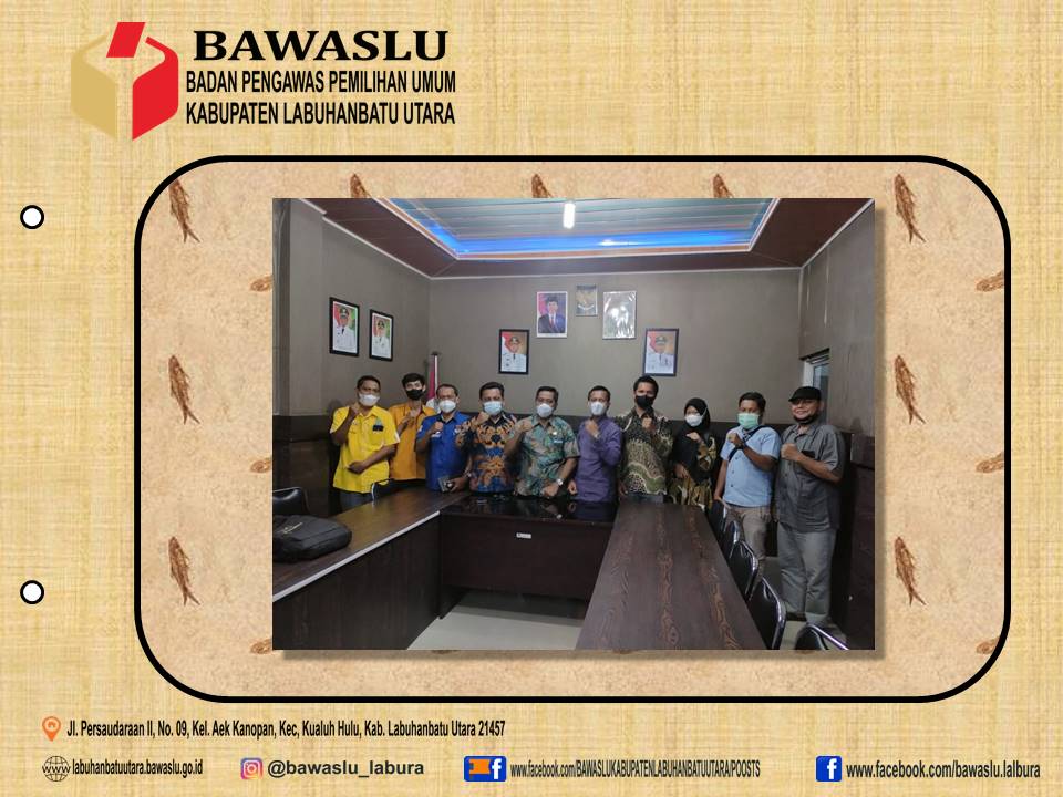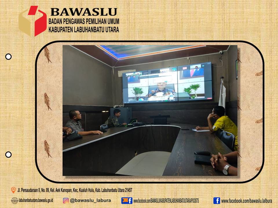 M. Yusuf, S. Ag ( Ketua Badan Pengawas Pemilihan Umum Kabupaten Labuhanbatu Utara ) menghadiri kegiatan Rapat Bersama Kementerian Dalam Negeri ( Mendagri ) Republik Indonesia, Komisi Pemilihan Umum ( KPU ), Badan Pengawas Pemilihan Umum ( Bawaslu ) dan seluruh Partai Republik Indonesia secara Daring melalui Zoom Meeting di Kantor Kesekretariatan Dinas Informasi dan Komunikasi ( Diskominfo ) Kabupaten Labuhanbatu Utara.