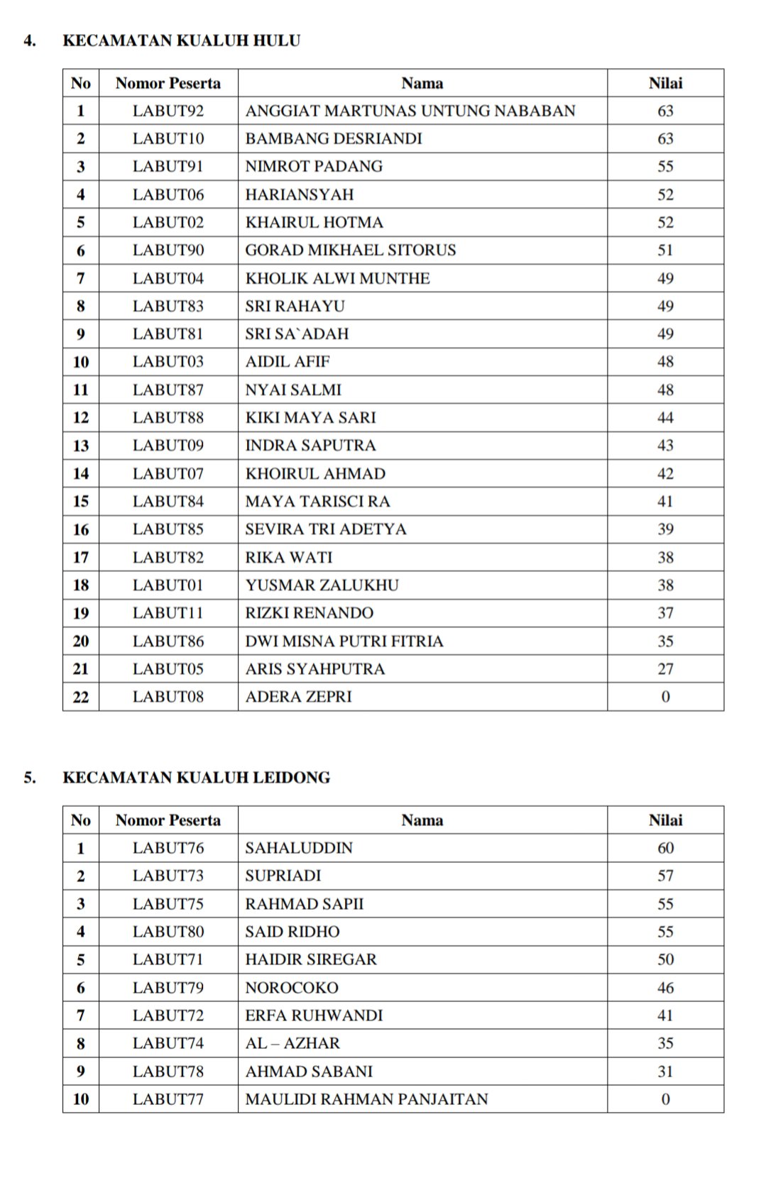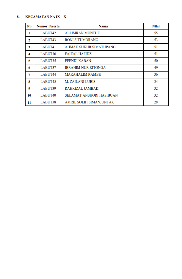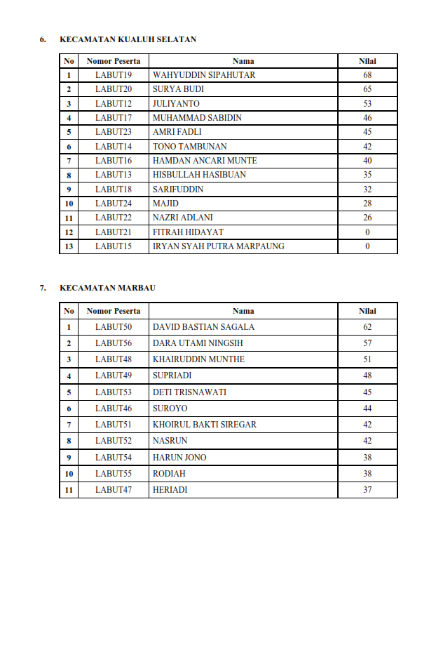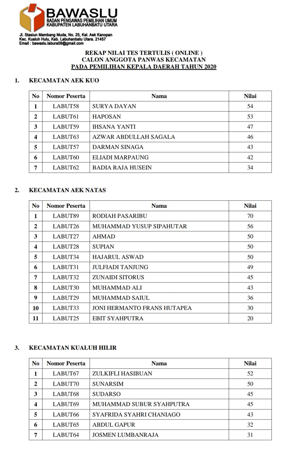 PENGUMUMAN HASIL TES TERTULIS (ONLINE) CALON ANGGOTA PANITIA PENGAWAS PEMILIHAN KECAMATAN SE KABUPATEN LABUHANBATU UTARA PADA PEMILIHAN BUPATI DAN WAKIL BUPATI KABUPATEN LABUHANBATU UTARA TAHUN 2020.