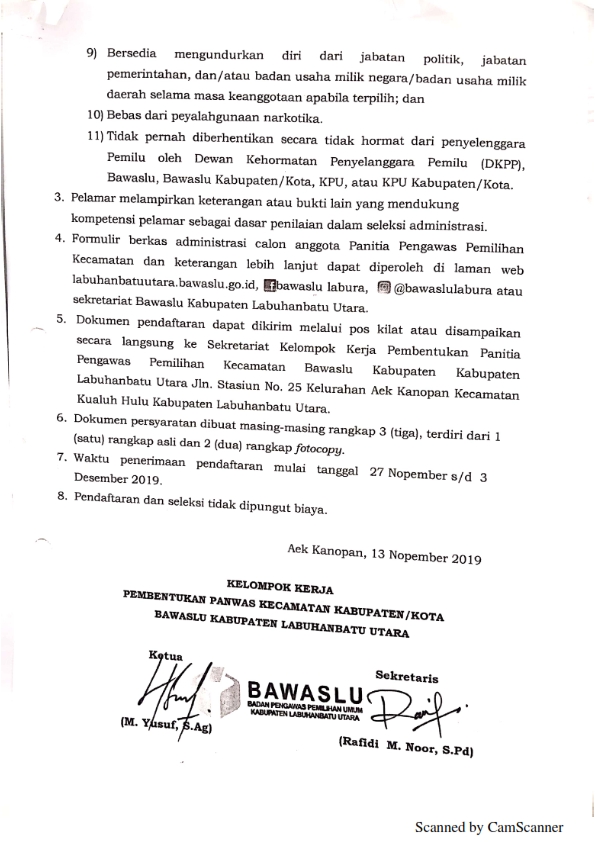 Persyaratan dapat dikirim Via Email ke alamat bawaslu.labura2020@gmail.Com dan dapat juga dikirim kilat Via POS atau diantar langsung ke Kesetariatan BAWASLU Kabupaten Labuhanbatu Utara.