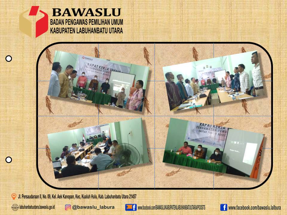 25 Maret 2022, Kantor Kesekretariatan Bawaslu Kabupaten Labuhanbatu Utara menjadi tempat pelaksanaan Rapat Kerja Teknis ( Rakernis ) Pengawasan Pemutakhiran Data Pemilih Berkelanjutan ( DPB ) Zona II yang sebelumnya Bawaslu Provinsi Sumatera Utara melaksanakannya di Kantor Kesekretariatan Bawaslu Kota Pematang Siantar.
