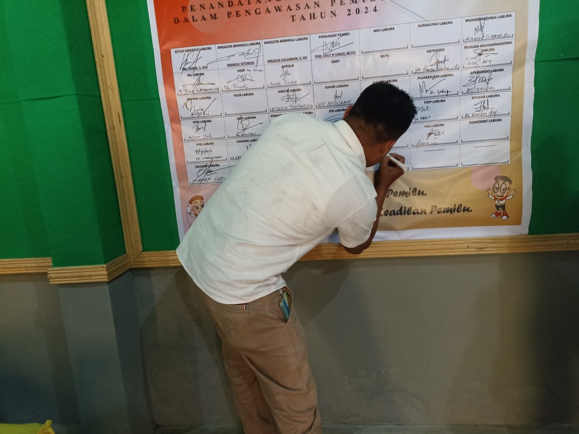 Sebanyak 50 peserta hadir menandatangani Komitmen Pengawasana Partisipatif pada Pemilu tahun 2024 yang akan datang.